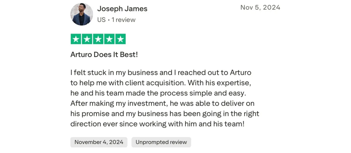 You work directly with Arturo Johnson ($20M+ generated, 500K+ followers, 12M monthly views) to build a systematic business that books sales calls and closes high-ticket clients predictably.